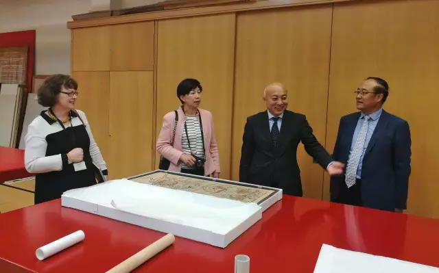 在大英博物馆修复室查看敦煌绢画保护修复情况